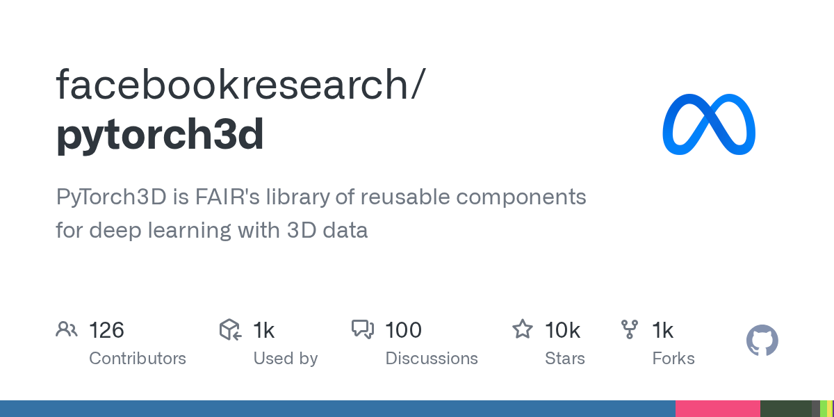 「pytorch3d」は、PyTorchをベースとした3Dディープラーニングライブラリです。3Dデータのロード、前処理、データ拡張、ネットワークの構築、トレーニング、評価などのためのツールが提供されています。
